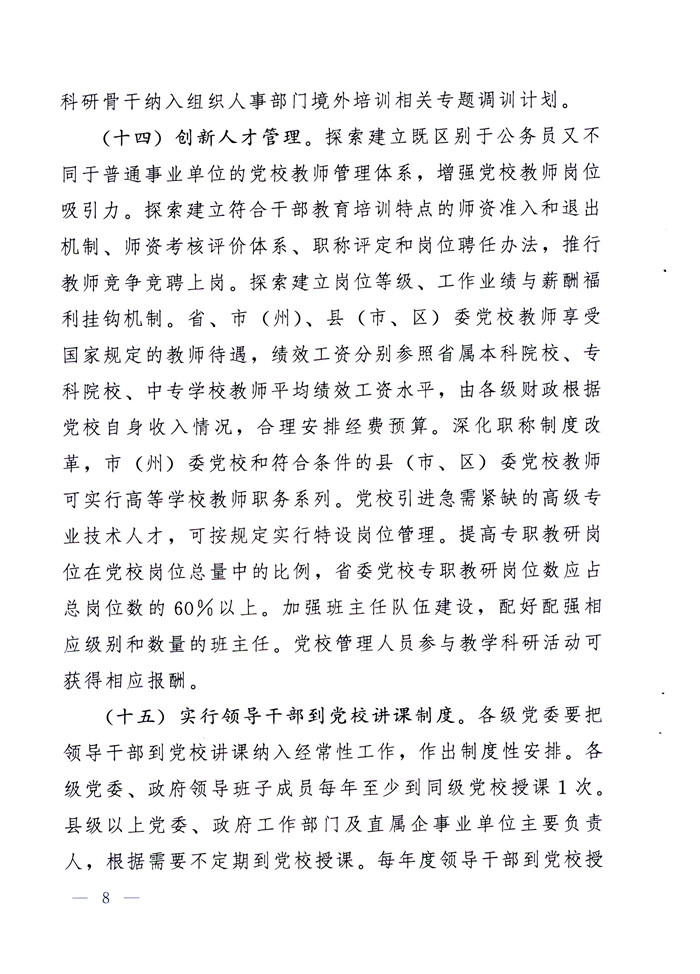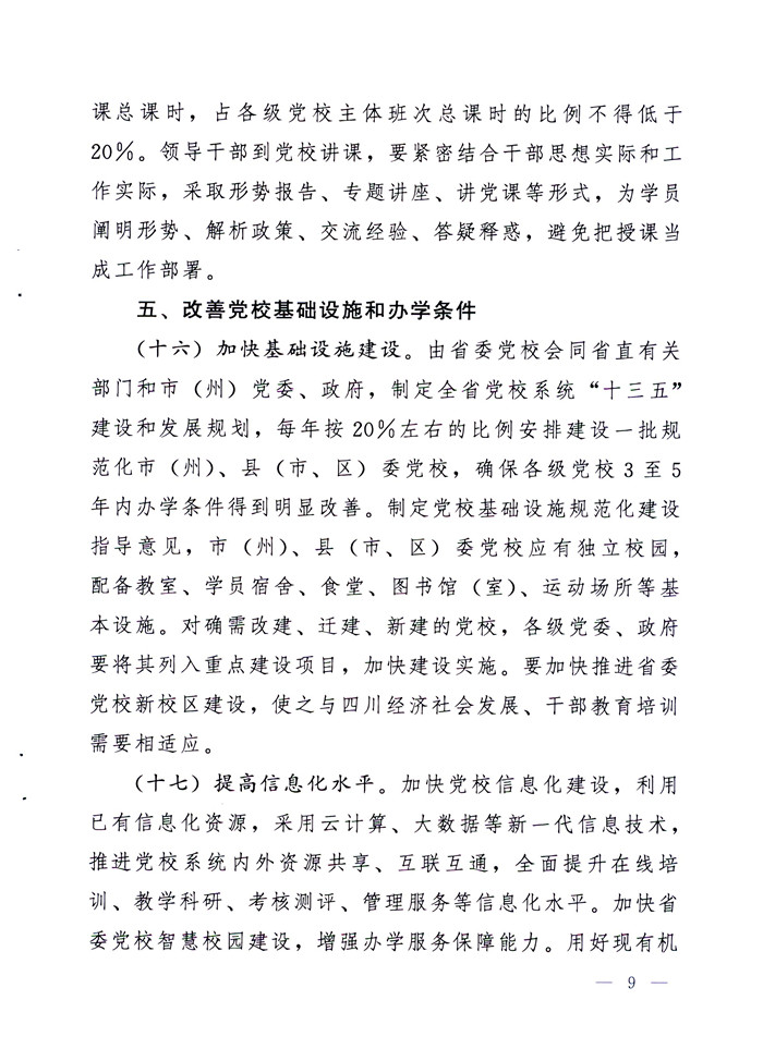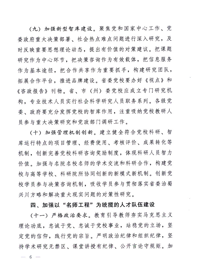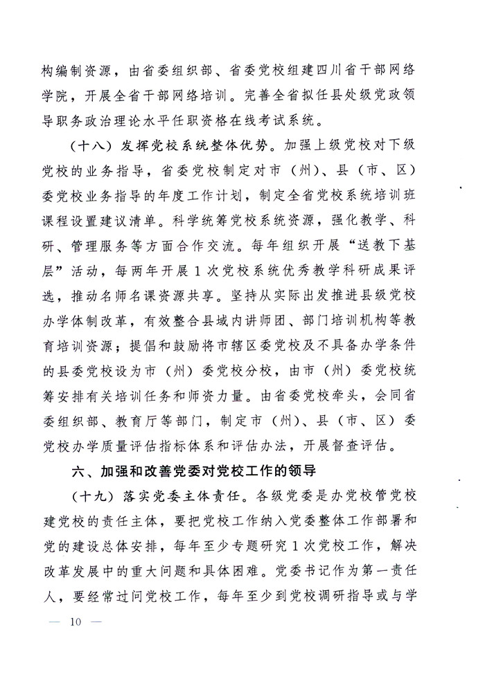 中共四川省委关于加强和改进新形势下党校工作的实施意见